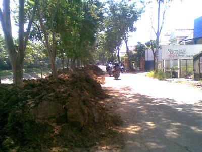 Namun semalam, saya menyadari bahwa anggapan saya selama ini keliru. Rupanya proyek yang akan dikerjakan di lokasi itu bukanlah membangun ruko, melainkan sebuah pom bensin (?)! Dan tadi pagi sepulang dari jalan-jalan, saya baru sempat mengambil fotonya.